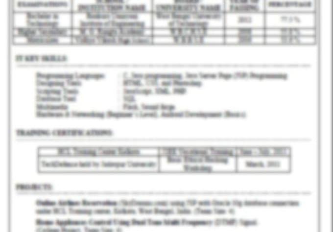 I have created many Profestional resume and cover letters with a real positive feedback. Resume has a very important role in your interview. It is said 30% is in your RESUME and 70% is in you. And a small mistake will cost a great trouble & loss while getting your dream job. And my happiness lies behind every person who get Job and made me feel proud that I have made his RESUME.Reviews